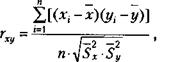 х, у — средние выборочные значения сравниваемых величин; х., у. — частные выборочные значения сравниваемых величин; n — общее число величин в сравниваемых рядах показателей (n=30); Sx, Sy — дисперсии, отклонения сравниваемых величин от средних значений.