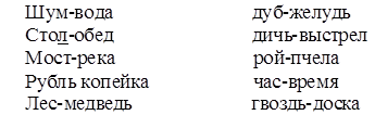 1) десять пар слов, между которыми легко установить смысловые связи.